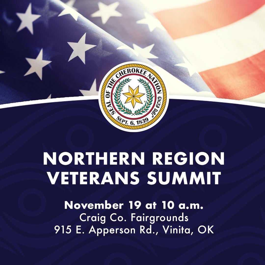 Join the Cherokee Nation for the Northern Region Veterans Summit β a special gathering dedicated to honoring and supporting veterans in our region. This event is an opportunity for veterans, their families, and the community to connect, learn, and access valuable resources and support services.