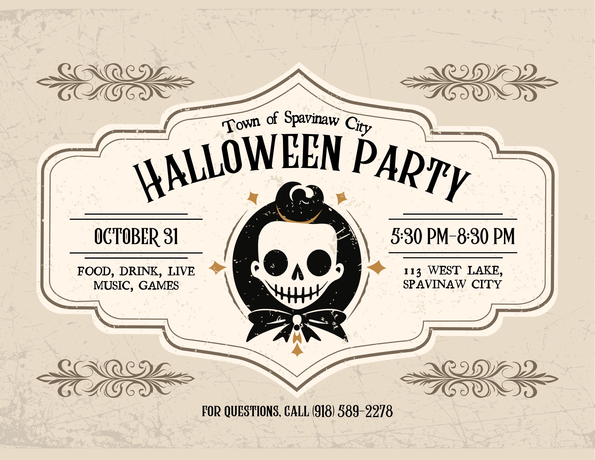 Get ready for a spooky-good time at the Spavinaw City Halloween Party! Bring your family, friends, and festive spirit for an evening packed with fun and fright.