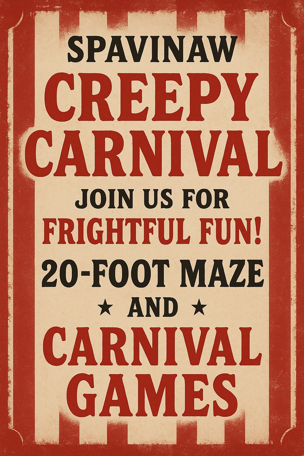 Step right up⦠if you dare! The Spavinaw Creepy Carnival is back and packed with frightful fun for kids of all ages. Get ready to test your courage, your aim, and your wits at this spooky Halloween celebration!
