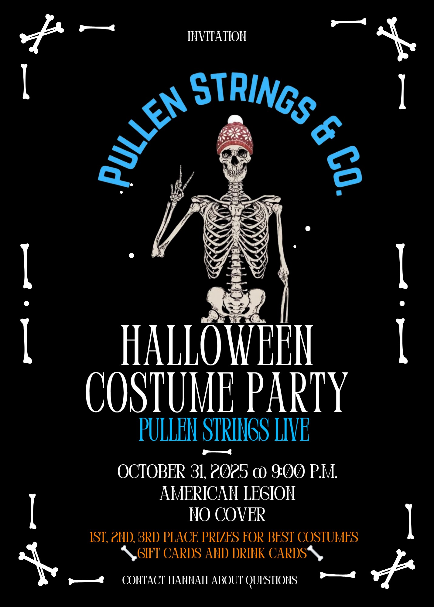 Get ready for a bone-rattling good time at the Halloween Costume Party hosted by Pullen Strings & Co.! Come in costume, bring your friends, and dance the night away to live music by Pullen Strings!